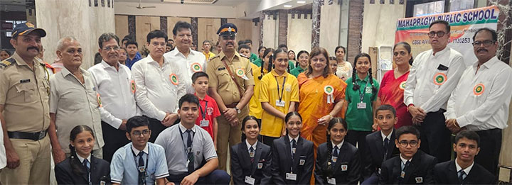 मुंबई। आचार्य़ महाप्रज्ञ पब्लिक स्कूल द्वारा 15 अगस्त (स्वतंत्रता दिवस) का कार्यक्रम बड़े ही धूमधाम के साथ मनाया गया। विद्यालय के प्रांगण को झंडो,फूलों गुब्बारों से सजाया गया था। विद्यालय के प्रांगण में ध्वजारोहण के कार्यक्रम में मुख्य अतिथि गण के रुप में उपस्थित नितिन तडखे (वरिष्ठ पुलिस निरीक्षक एल.टी.मार्ग पुलिस स्टेशन) इस कार्यक्रम में सम्मिलित होने के लिए पधारे थे। श्री कुंदनमल जी धाकड़, अध्यक्ष आचार्य विद्या निधि फाउंडेशन, श्री गणपतलाल जी डागलिया कार्यकारी अध्यक्ष आचार्य विद्या निधि फाउंडेशन, सी.ए.श्री सुमेर सुराणा, उपाध्यक्ष आचार्य विद्या निधि फाउंडेशन, श्री रमेश मेहता, उपाध्यक्ष आचार्य विद्या निधि फाउंडेशन,श्री इंद्रमल जी धाकड़ उपाध्यक्ष आचार्य विद्या निधि फाउंडेशन,श्री लक्ष्मी लाल जी डागलिया प्रधान सचिव आचार्य विद्या निधि फाउंडेशन,श्री प्रकाश सिसोदिया जी कोषाध्यक्ष आचार्य विद्या निधि फाउंडेशन,श्री सुरेश डागलिया जी प्रबंध न्यासी आचार्य विद्या निधि फाउंडेशन और विद्यालय की निर्देशिका डॉ.वनिता मनसुखानी, प्रधानाध्यापिका श्रीमती सरोज मचाड़ो की उपस्थिति में संपन्न कराया गया। तत्पश्चात मंगलाचरण पाठ विद्यालय में उपस्थित साध्वी जी के द्वारा किया गया। वहां पर उपस्थित सभी मुख्य अतिथि गणों ने सभी छात्रों के साथ समुह चित्र लिया। सभी मुख्य अतिथि गणों को आदर सहित विद्यालय के सभागार तक लाया गया।