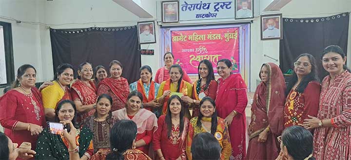 मुंबई। आमेट महिला मंडल मुंबई द्वारा स्वाद- स्नेह नव वर्ष मिलन (new year get – together special) कार्यक्रम घाटकोपर तेरापंथ सभा भवन में दो चरण में आयोजित किया गया। प्रथम चरण में सर्वप्रथम शासन श्री साध्वी श्री जी कंचन प्रभा जी, शासन श्री मंजू रेखाजी,उदित प्रभाजी ,निर्भय प्रभाजी, चेलना श्रीजी के महामंत्रोच्चार ओर मंगल स्तुति से कार्यक्रम की शुभ शुरुआत हुई ।