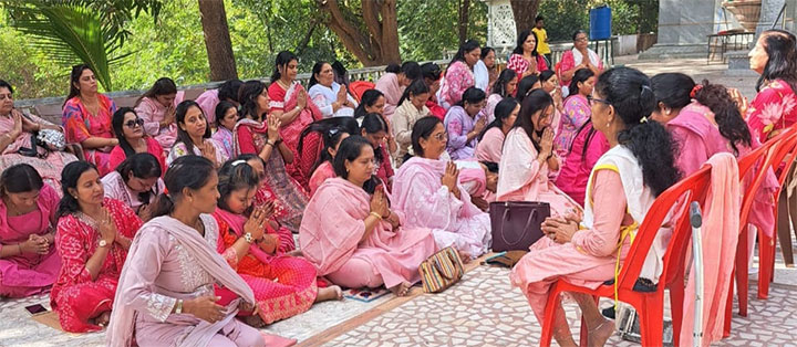 एक साथ सभी ने मिलकर ध्यान किया श्रीमती भगवतीजी हिरण, तारा चौधरी ,कंचन बम, पारस देवी लोढ़ा ने प्रेक्षाध्यान कराया वहां से बस के माध्यम से असल स्वर्ण विला पहुंचे वहां जाकर सभी ने लंच लिया और गेम को एंजॉय किया एंकर श्रीमती प्रियाजी मुथा ने सभी बहनों को बहुत इंजॉय कराया एवम स्पोर्ट्स में बहनों ने जमकर हिस्सा लिया और बचपन की यादों को ताज किया।
