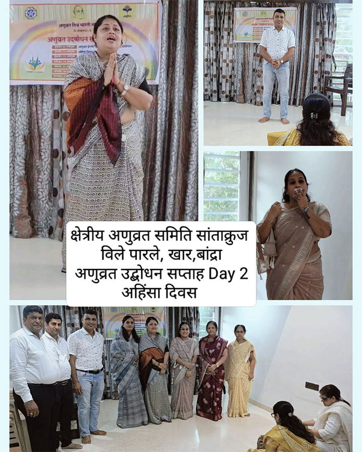 प्रथम (अणुव्रत संगान दिवस) साध्वी श्री राकेश कुमारी जी स्वास्थ्य लाभ हेतु विराज रहे है एवं मिलाप सोसाइटी में अणुव्रत गीत संगान करके मनाया, द्वितीय (अहिंसा दिवस) पर वक्तव्य एवं कविता द्वारा मनाया गया,तृतीय दिवस कांदिवली में कुलदीप एवं मुकुल मुनि के सानिध्य में सांप्रदायिक सौहार्द दिवस के रूप में मनाया गया।