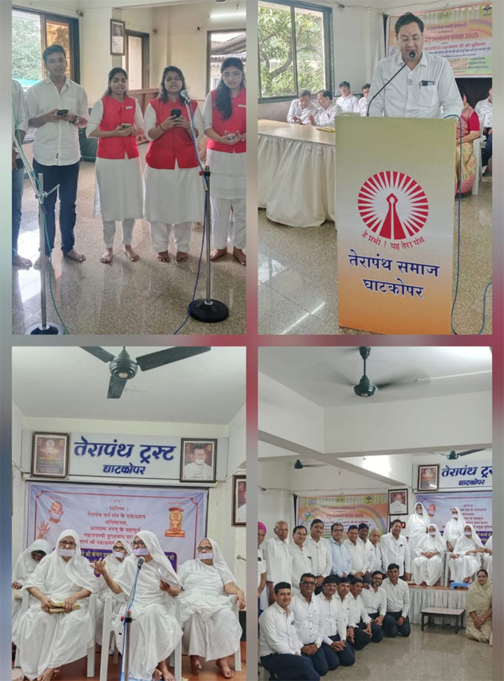 अणुव्रत समिति मुंबई के वरिष्ठ उपाध्यक्ष मनोहर कच्छारा, कोषाध्यक्ष सुरेश मेहता,सह मंत्री कमलेश दुग्गड़, ठाणा संयोजक रतन कच्छारा , विमला हिरन, ABTMM की पूर्व अध्यक्ष कुमुद कच्छारा, घाटकोपर महिला मंडल अध्यक्ष मंजू बड़ाला, तेयुप अध्यक्ष निलेश बाफना,भीमराज सुराणा, विक्रोली से प्रकाश जी पोखरना,लोकेश डांगी, पंकज संचेती,रूपेश धाकड़, वसंत कच्छारा ,स्वप्निल कावड़िया,रेखा सोनी, ललिता सोनी, भावना डांगी,जितेश धाकड़,कमलेश चोरड़िया, श्रवण चोरड़िया ,जीवन धाकड़,कांति मेहता, प्रिंस सिंघवी, हस्तीमल डांगी, ख्यालीलाल कोठारी , चांदमल सोलंकी, जीतू भाई भाभेरा आदि की उपस्थिति रही।