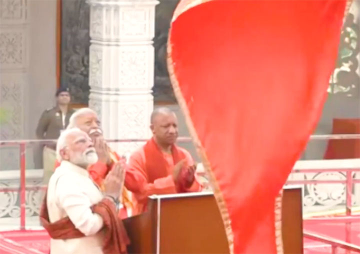 अयोध्या राम मंदिर पर मोदी ने फहरायी धर्म ध्वजा, जयश्रीराम के उद्घोष से गूजा परिसर