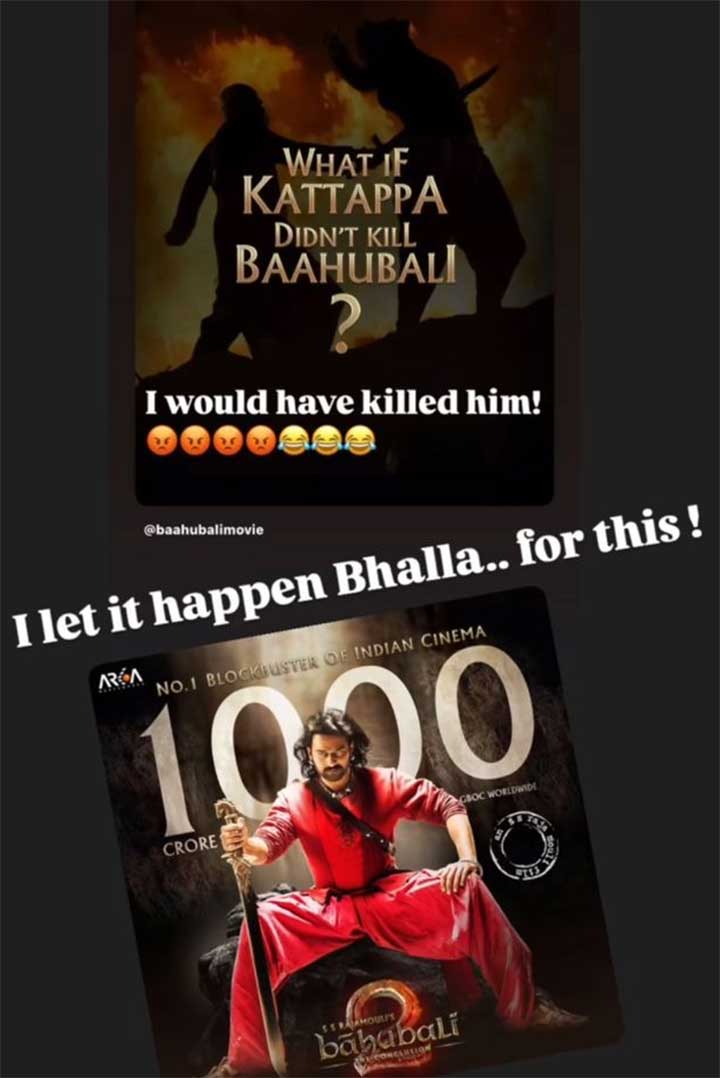 लेकिन जब प्रभास ने इसे अपनी इंस्टा स्टोरी पर शेयर किया और लिखा “मैंने होने दिया भल्ला… इसी के लिए!” साथ में ‘बाहुबली: द कॉन्क्लूजन’ का वो पोस्टर भी लगाया जिस पर लिखा था इंडियन सिनेमा का नंबर.1 ब्लॉकबस्टर | दुनिया भर में ₹1000 करोड़ से ज्यादा, जिसके बाद इंटरनेट पर हंगामा मच गया।