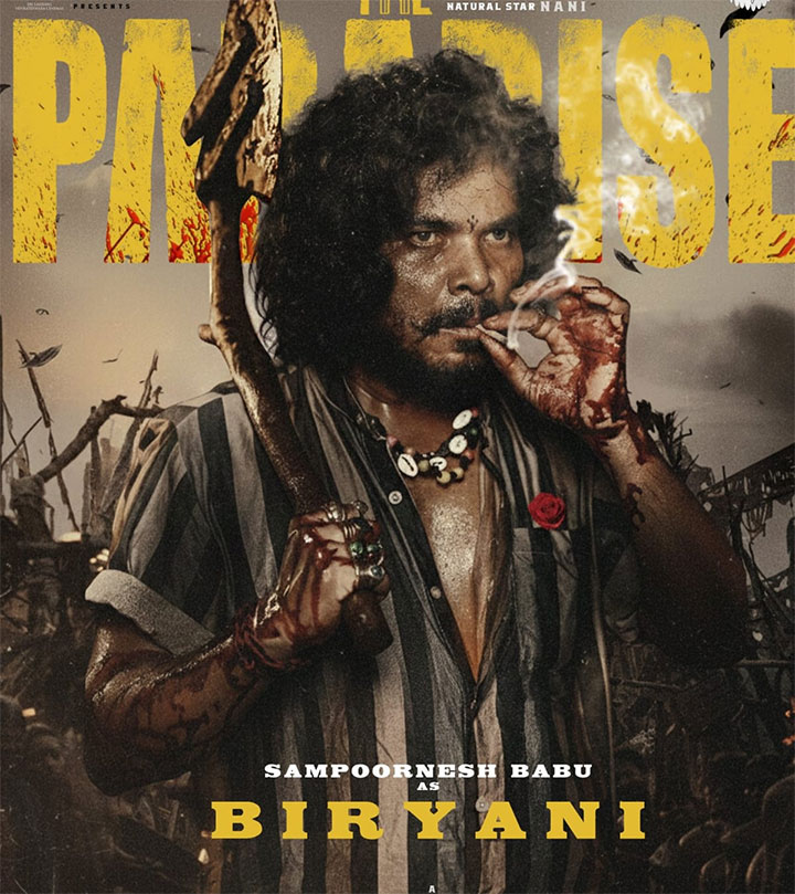 दसारा की ज़बरदस्त कामयाबी के बाद निर्देशक श्रीकांत ओडेला और नेचुरल स्टार नानी एक बार फिर साथ आ रहे हैं फिल्म द पैराडाइज़ के साथ, जो इस वक्त देश की सबसे ज़्यादा इंतज़ार की जा रही फिल्मों में शामिल है। इस फिल्म को लेकर दर्शकों में जबरदस्त उत्साह बना हुआ है। इसी बीच मेकर्स ने एक नया कैरेक्टर पोस्टर जारी किया है, जिसमें सम्पूर्णेश बाबू ‘बिरयानी’ के रोल में दिखाई दे रहे हैं।