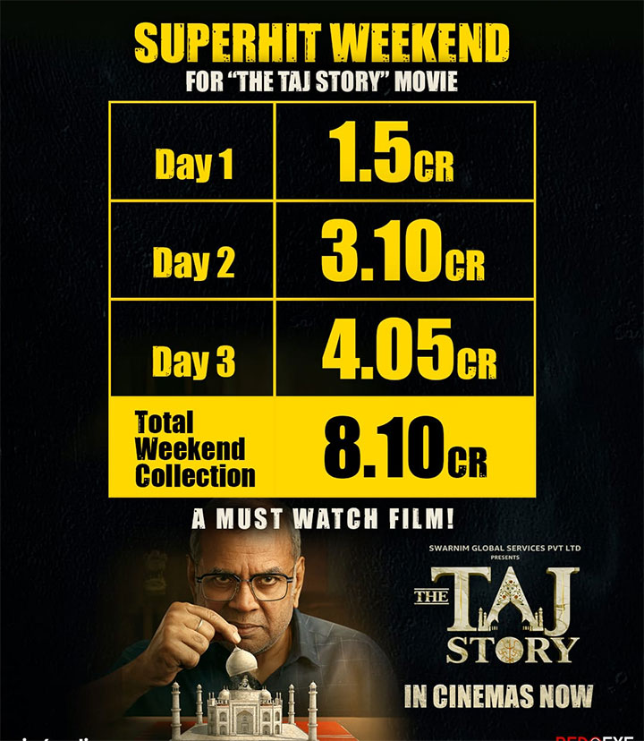 परेश रावल अभिनीत और तुषार अमरीश गोयल द्वारा निर्देशित ‘द ताज स्टोरी’ ने बॉक्स ऑफिस पर तूफ़ान मचा दिया है। फिल्म ने अपने शुरुआती तीन दिनों में ₹8.10 करोड़ की शानदार कमाई करते हुए ट्रेड सर्किल को हैरान कर दिया है। हर दिन के साथ फिल्म की कमाई में लगातार बढ़ोतरी देखने को मिली है।