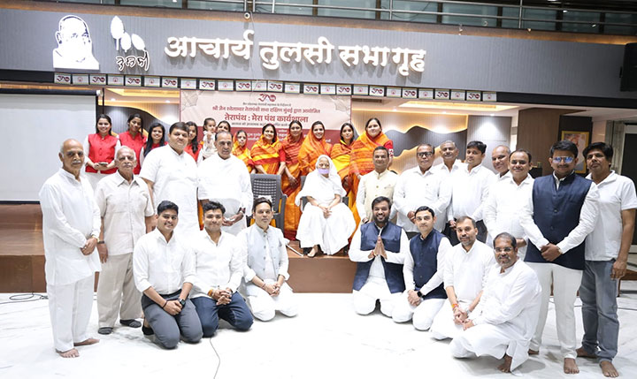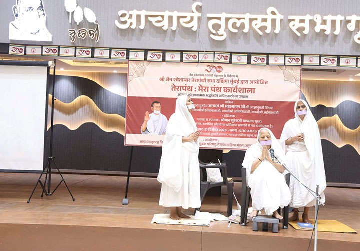 मुंबई। आचार्य भिक्षु त्रिशताब्दी वर्ष के अवसर पर श्री जैन श्वेतांबर तेरापंथी सभा, मुंबई के तत्वावधान में तेरापंथ – मेरापंथ कार्यशाला का आयोजन तेरापंथ सभा दक्षिण मुंबई द्वारा हुआ । कार्यक्रम की पूर्व तैयारी में दक्षिण मुंबई के कर्मठ कार्यकर्ता कई दिनों से लगे हुए थे । परम पूज्य आचार्य श्री महाश्रमण जी की सुशिष्या शासन श्री साध्वी श्री शिवमाला जी एवं साध्वी वृंद के सान्निध्य में आयोजित कार्यक्रम का शुभारंभ नवकार महामंत्र के मंगल गान से हुआ । श्रावक निष्ठा पत्र का वाचन मुंबई सभा के अध्यक्ष श्री मानक धींग ने किया।