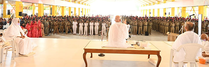 कोबा, गांधीनगर (गुजरात)। कोबा में वर्ष 2025 का चतुर्मास सुसम्पन्न कर रहे जैन श्वेताम्बर तेरापंथ धर्मसंघ के एकादशमाधिशास्ता, भगवान महावीर के प्रतिनिधि, युगप्रधान, अखण्ड परिव्राजक आचार्यश्री महाश्रमणजी की मंगल सन्निधि में मानों आयोजनों की झड़ी-सी लगी हुई है। संघीय संस्थाओं द्वारा किए जा रहे आयोजनों से पूरा प्रेक्षा विश्व भारती परिसर मानों हमेशा गुलजार बना हुआ है। सोमवार को युगप्रधान आचार्यश्री महाश्रमणजी की मंगल सन्निधि में अणुव्रत विश्व भारती सोसायटी द्वारा एलिवेट कार्यक्रम का आयोजन किया गया, जिसमें गुजरात एनसीसी के सैंकड़ों-सैंकड़ों कैडेट्स उपस्थित थे। इसके साथ गुजरात एनसीबी के जोनल हेड, पंजाब के डीजीपी व एनसीसी के मेजर जनरल आदि भी विशेष रूप से उपस्थित से आचार्यश्री की मंगलवाणी का श्रवण करने के उपरान्त विशिष्ट महानुभावों ने अपनी भावाभिव्यक्ति दी तथा आचार्यश्री से मंगल आशीर्वाद प्राप्त किया।