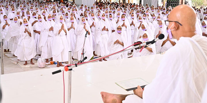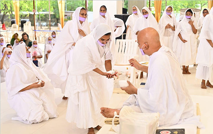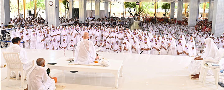 अपने आराध्य के प्रति अगाध गुरुभक्ति का यह क्रम आज प्रभात में ब्रह्म मुहूर्त से ही मंगल अभिनन्दन के साथ प्रारंभ हो गया था। तत्पश्चात, सूर्योदय की प्रथम रश्मियों के साथ साध्वी प्रमुखा विश्रुतविभा जी सहित साध्वी समुदाय विशाल सुधर्मा सभा में गुरु सन्निधि में उपस्थित हुईं।