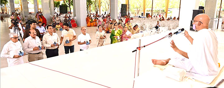 इस अत्यंत भक्तिमय और नयनाभिराम दृश्य के बीच उपस्थित चारित्रआत्माओं द्वारा आचार्य प्रवर एवं साध्वी प्रमुखा जी के श्रीचरणों में भावपूर्ण अभ्यर्थना की गई। इस मंगल अवसर पर राजस्थान विधानसभा के अध्यक्ष श्री वासुदेव देवनानी ने भी लाडनूं स्थित जैन विश्व भारती पहुंचकर शांतिदूत आचार्य श्री महाश्रमण जी के पावन दर्शन किए और इस विशेष दिन पर गुरुदेव का मंगल आशीर्वाद ग्रहण किया। इस गरिमापूर्ण आयोजन से पूरी तपोभूमि एक नई ऊर्जा और उत्साह से गुंजायमान हो उठी।
