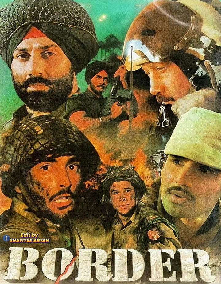 जेपी दत्ता द्वारा निर्देशित, बॉर्डर भारतीय सिनेमा की सबसे प्रतिष्ठित युद्ध फ़िल्मों में से एक है। 1971 के भारत–पाक युद्ध के दौरान लोंगेवाला की लड़ाई पर आधारित इस फ़िल्म में सनी देओल और जैकी श्रॉफ ने मुख्य भूमिका निभाई। हर अभिनेता का प्रदर्शन जोश, वीरता और अटूट देशभक्ति से भरा था।