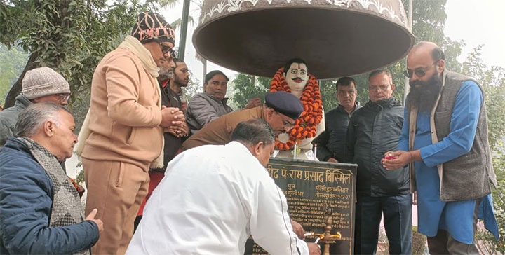 बस्ती (उ.प्र.)। महुआ डाबर संग्रहालय, बस्ती द्वारा काकोरी ट्रेन एक्शन के महानायक राजेंद्रनाथ लाहिड़ी के बलिदान दिवस से लेकर ठाकुर रोशन सिंह के बलिदान दिवस तक ‘शहादत से शहादत तक’ शीर्षक से तीन दिवसीय कार्यक्रम का शुभारंभ गोरखपुर स्थित रामप्रसाद बिस्मिल स्मारक स्थल से हुआ। कार्यक्रम का उद्घाटन जेलर अरुण कुमार कुशवाहा ने शहीद रामप्रसाद बिस्मिल की प्रतिमा पर माल्यार्पण कर एवं दीप प्रज्वलन कर किया। इसके पश्चात दुर्लभ ऐतिहासिक दस्तावेजों की प्रदर्शनी का अवलोकन कराया गया। मुख्य अतिथि अरुण कुमार कुशवाहा ने अपने उद्बोधन में कहा कि क्रांतिकारियों का बलिदान केवल इतिहास नहीं, बल्कि राष्ट्र निर्माण की प्रेरक शक्ति है, जिसे नई पीढ़ी तक पहुंचाना हम सभी की जिम्मेदारी है।