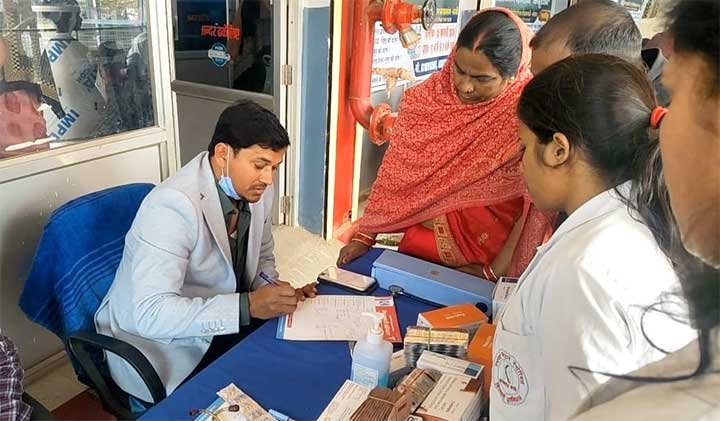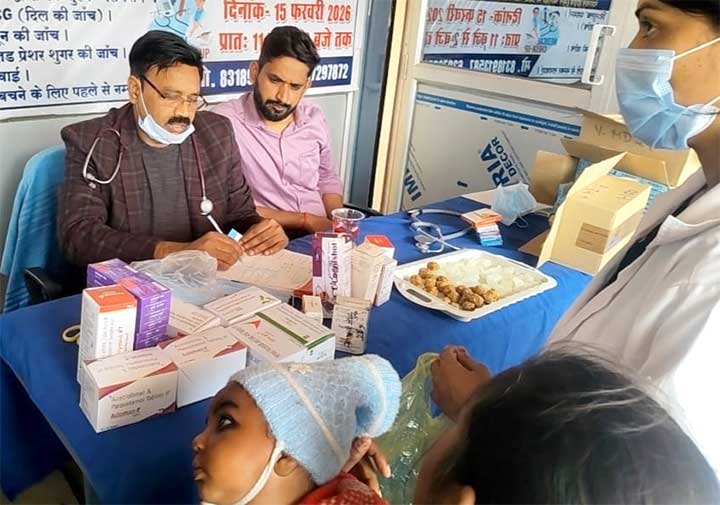 - विशेषज्ञ चिकित्सा शिविर में हर प्रकार मरीजों को निःशुल्क जांच , इलाज व दवा की गई वितरित