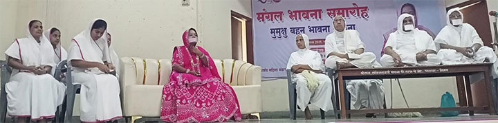 पालघर! जैन श्वेतांबर तेरापंथी सभा पालघर के तत्वाधान में आचार्य श्री महाश्रमण जी के मार्गदर्शन के पारमार्थिक शिक्षण संस्था में साधनारत मुमुक्षु संयोजिका चन्दनजी, मुमुक्षु प्रियाजी, मुमुक्षु श्वेताजी, मुमुक्षु ऋषिकाजी स्थानकवासी साध्वी श्री मधुबाला जी, मूर्तिपूजक साध्वी श्री भव्यपद्मा जी के पावन सान्निध्य में दीक्षार्थी भावना बाफना का मंगल भावना कार्यक्रम और वरघोड़ा का आयोजन 17 अगस्त को पालघर में किया गया। स्थानकवासी साध्वी श्री मधुबाला जी द्वारा नमस्कार महामंत्र से मंगल भावना कार्यक्रम आयोजित करते हुए दीक्षार्थी भावना बाफना के प्रति संयम मार्ग पर अग्रसर होने की शुभकानाएं प्रेषित की। मूर्ति पूजक साध्वी श्री भव्यपद्मा जी द्वारा मुमुक्ष के प्रति मंगल प्रेरणा प्रदान किया। स्वागत भाषण सभाध्यक्ष श्री चतुर जी तलेसरा ने किया। कन्या मंडल द्वारा सुंदर परिसंवाद की प्रस्तुति दी। महिला मंडल द्वारा गीतिका के माध्यम से मंगलकामना प्रेषित की गई। दीक्षार्थी भावना बाफना ने अपने ओजस्वी विचार रखते हुए त्याग प्रत्याखान की प्रेरणा दी।