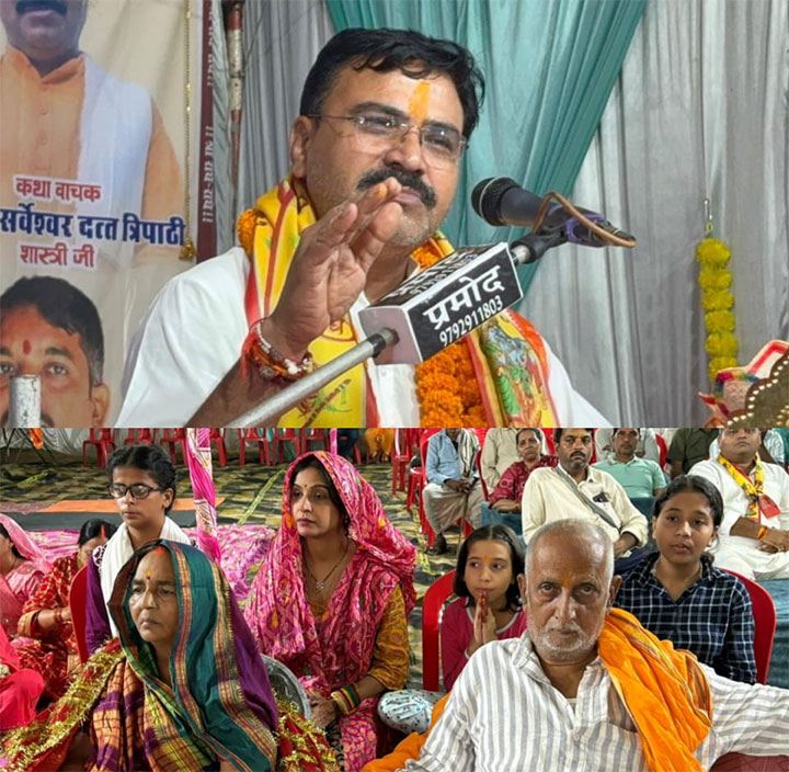 कथा के अंतिम दिवस पर व्यासपीठ से पंडित सर्वेश्वर दत्त त्रिपाठी ने मानव जीवन की दुर्लभता, संस्कारों की महत्ता और मर्यादा के पालन पर गहन प्रकाश डाला। उन्होंने कहा कि कई जन्मों के सत्कर्मों के फलस्वरूप मानव शरीर प्राप्त होता है, जिसकी सबसे बड़ी जिम्मेदारी धर्म, दान-पुण्य, परोपकार और सद्कर्मों में जीवन व्यतीत करना है। पंडित त्रिपाठी ने अपने उद्बोधन में कहा, ‘‘पृथ्वी पर कोई ऐसा जीव नहीं जिसके जीवन में चुनौतियां न हों, किंतु मानव अपने सहज एवं निर्मल स्वभाव से धर्मानुकूल आचरण अपनाकर लक्ष्य प्राप्त कर सकता है। आज की युवा पीढ़ी में व्याप्त समस्याओं का मूल कारण संस्कारों की कमी है।
