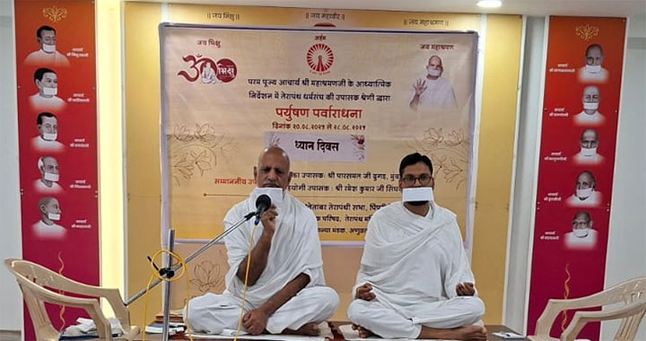 गुरुदेव द्वारा इंगित तथा केंद्र से निर्धारित सभी दैनिक कार्यक्रम सुबह प्रवचन, सायं कालिन प्रतिक्रमण और अर्हत वंदना तथा रात्रिकालीन प्रवचन बहुत ही व्यवस्थित एवं सुचारू रूप से संपन्न हो रहे हैं। और प्रवक्ता उपासक पारसमल जी दूगड़ तथा सहयोगी उपासक श्री रमेश कुमारजी सिंघवी जी उपस्थित जन समुदाय को उद्बोधित कर रहे हैं। पर्यूषण पर्व का प्रथम और दूसरे दिन 20 -21 अगस्त खाद्य संयम और स्वाध्याय महत्त्व के साथ विशेष आकर्षण का केंद्र था प्रेक्षा ध्यान द्वारा तपस्या को सहजता एवं सरलता से कैसे पूर्ण किया जाये, और साथ में आगम वाणी, कालचक्र पर विशेष प्रवचन सुनने को मिला।