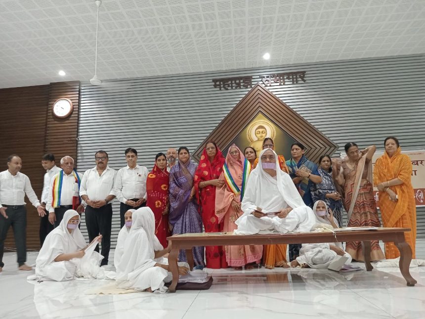 इस अवसर पर जयपुर से सेवार्थ समागत साध्वी श्री मंगल प्रज्ञा जी की संसार पक्षीय माता जी श्रद्धा की प्रतिमूति, महादानी सुमंगलसाधिका श्राविका श्रीमती भीखी देवी सेठिया का तेरापंथ समाज सूरत द्वारा सम्मान किया गया। सभा मंत्री महेन्द्र जी गांधी मेहता ने आध्यात्मिक विकास की मंगलकामना की। श्रीमती भीखी देवी सेठिया की पुत्री मानकदेवी छाजेड़ ने कहा हमारी माँ हमारी प्रेरणा और ‘आदर्श है । पूरे परिवार की ओंर से उन्होंने सूरत तेरापंथ समाज एवं सभी संस्थाओं के प्रति आभार जताया। कार्यक्रम का संचालन साध्वी अतुलयशा जी ने कुशलता पूर्वक किया.!