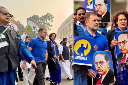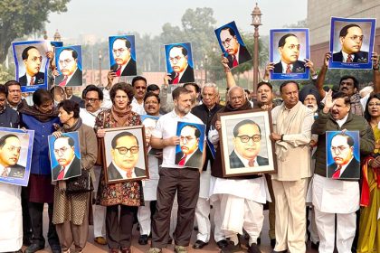 बाबा साहेब आंबेडकर पर अमित शाह की टिप्पणी से विपक्ष नाराज, तस्वीर के साथ प्रदर्शन, कहा, गृहमंत्री माफी मांगें