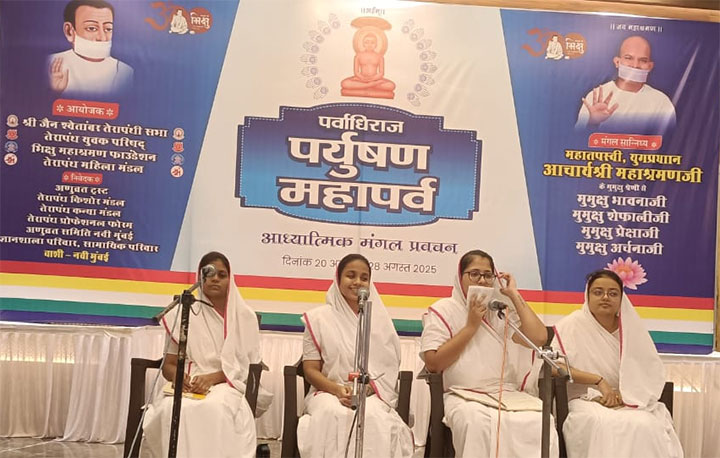 तेरापंथ समाज वाशी के तत्वाधान में अभिनव सामायिक का आयोजन रखा गया है उसमें लगभग 450 सामायिक में उपस्थिति रही। मुमुक्षु प्रेक्षाजी ने प्रेक्षाध्यान एवं जाप करवाया।